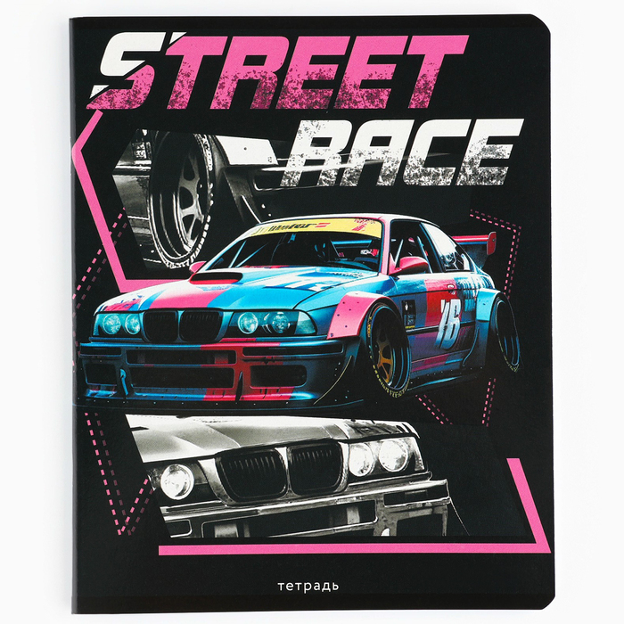 Тетрадь в клетку, 48 л., А5, на скрепке, блок №1, Street race, МИКС