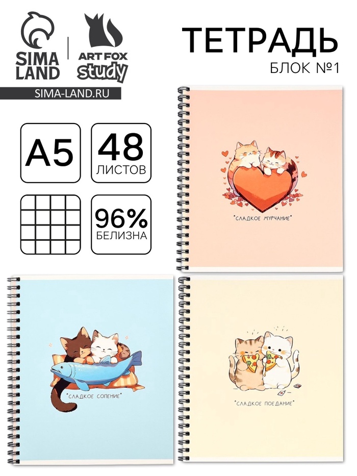 Тетрадь в клетку, 48 л., А5, на спирали, блок №1 «Аниме котики» МИКС — Характеристики