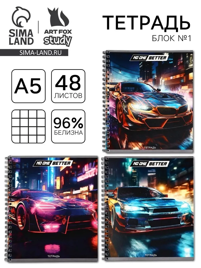 Тетрадь в клетку, 48 л., А5, на спирали, блок №1 «Уличные гонки» МИКС — Характеристики
