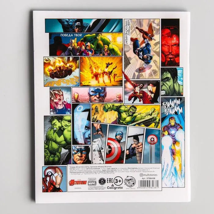 Тетрадь в клетку 48 листов, картонная обложка, «Мстители» — Характеристики
