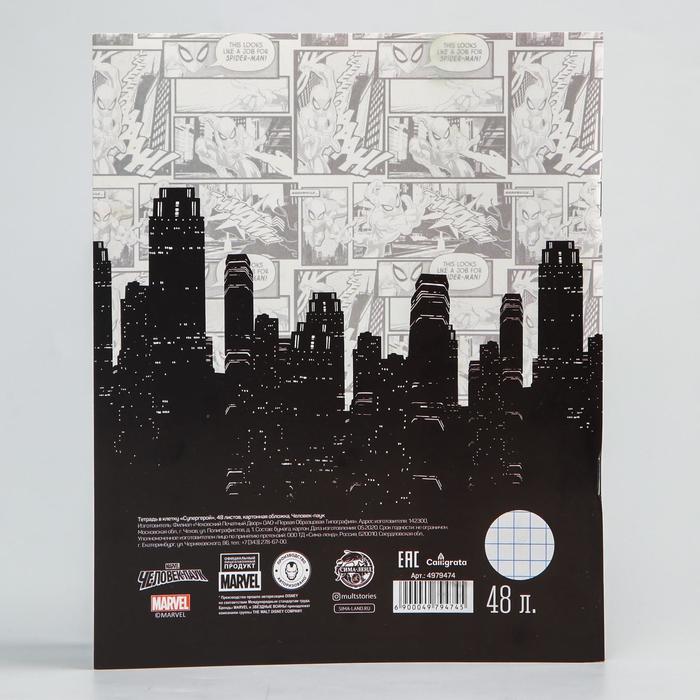 Тетрадь в клетку 48 листов, картонная обложка «Супергерой, Человек-паук» — Характеристики