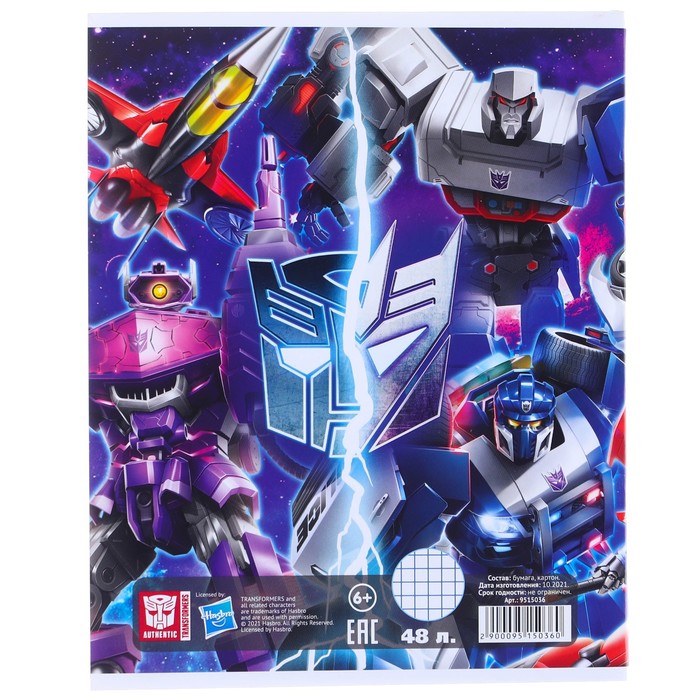 Тетрадь в клетку 48 листов, картонная обложка, «Трансформеры» — Характеристики