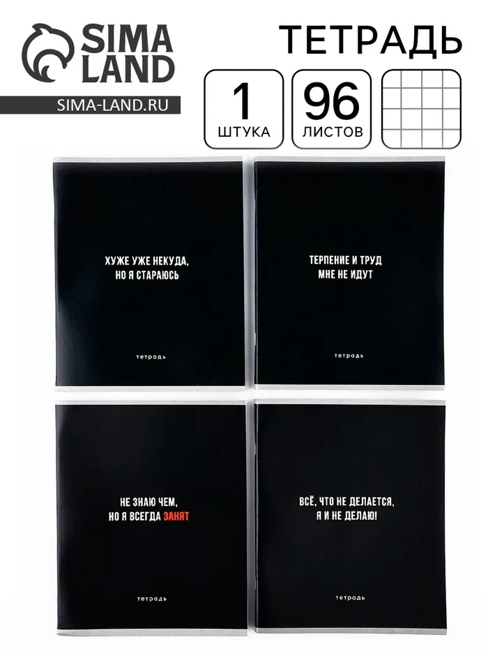 Тетрадь в клетку, 96 л., А5, на скрепке «Черные тетради» МИКС — Характеристики