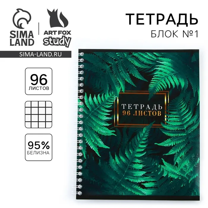 Тетрадь в клетку, 96 л., А5, на спирали, блок №1«Ботаника» — Характеристики