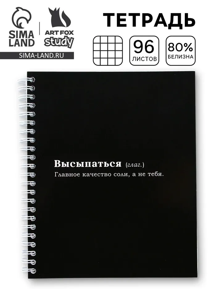 Тетрадь в клетку, 96 л., А5, на спирали, блок №2 «Высыпаться» — Характеристики