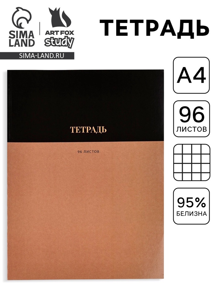 Тетрадь в клетку, А4, 96 л., на скрепке, блок №1 «Коричневая» — Характеристики