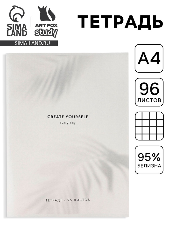 Тетрадь в клетку, А4, 96 л., на скрепке, блок №1 «Создавай» — Характеристики