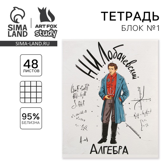 Тетрадь в клетку, предметная, 48 л.,на скрепке, А5 «ИСТОРИЧЕСКИЕ ЛИЧНОСТИ. Алгебра» — Характеристики