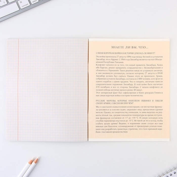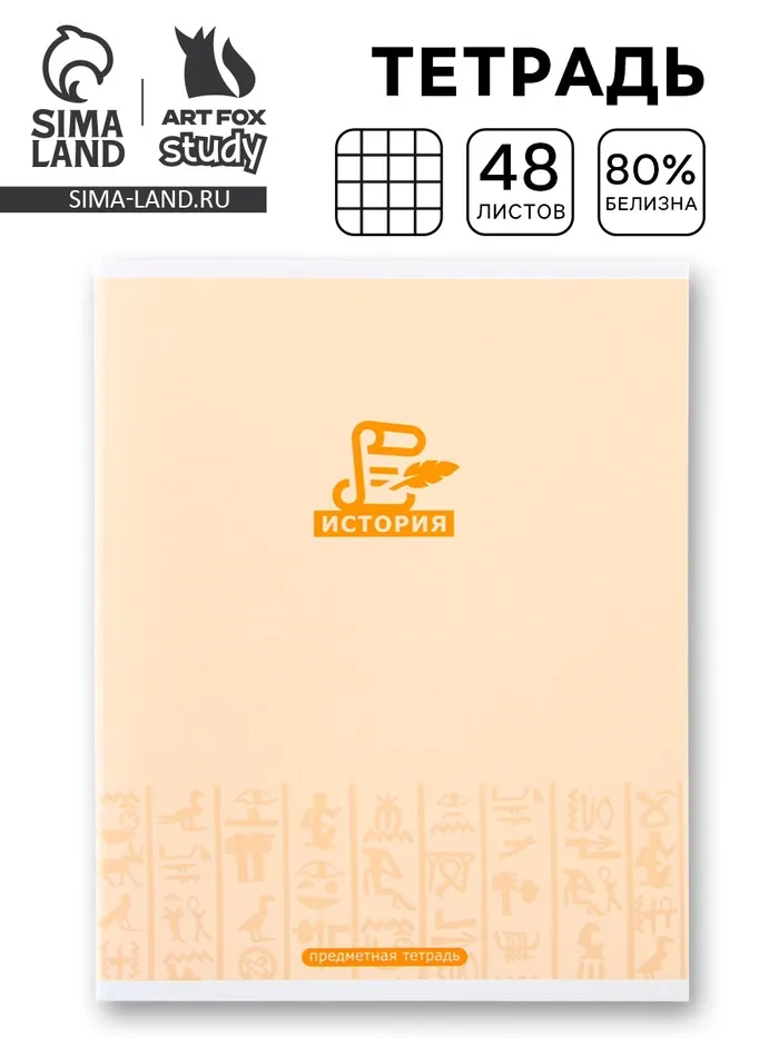 Тетрадь в клетку, предметная, 48 л.,на скрепке, А5 «МИНИМАЛИЗМ. История» — Характеристики