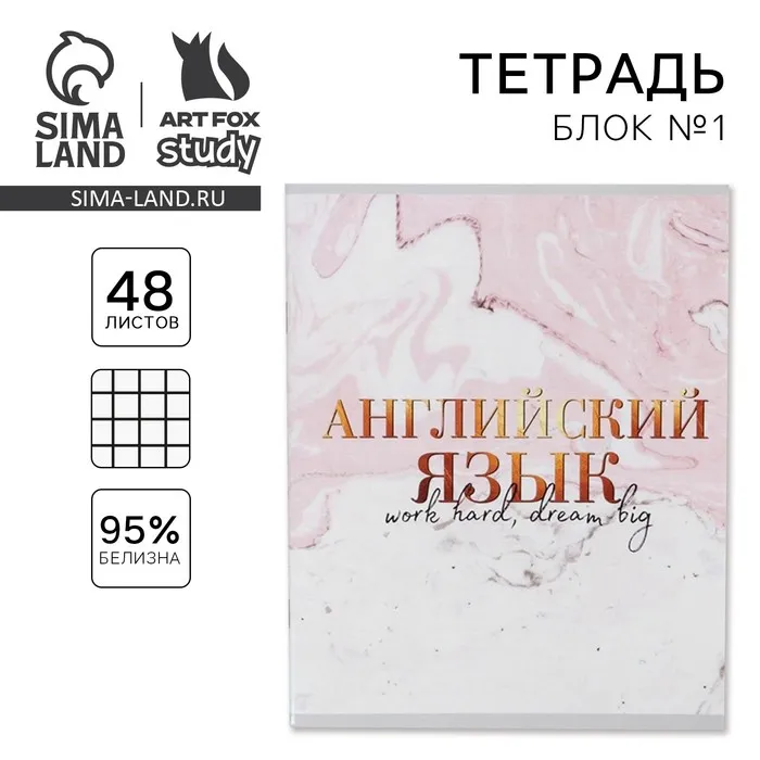 Тетрадь в клетку, предметная, 48 л.,на скрепке, А5 «МРАМОР. Английский язык» — Характеристики