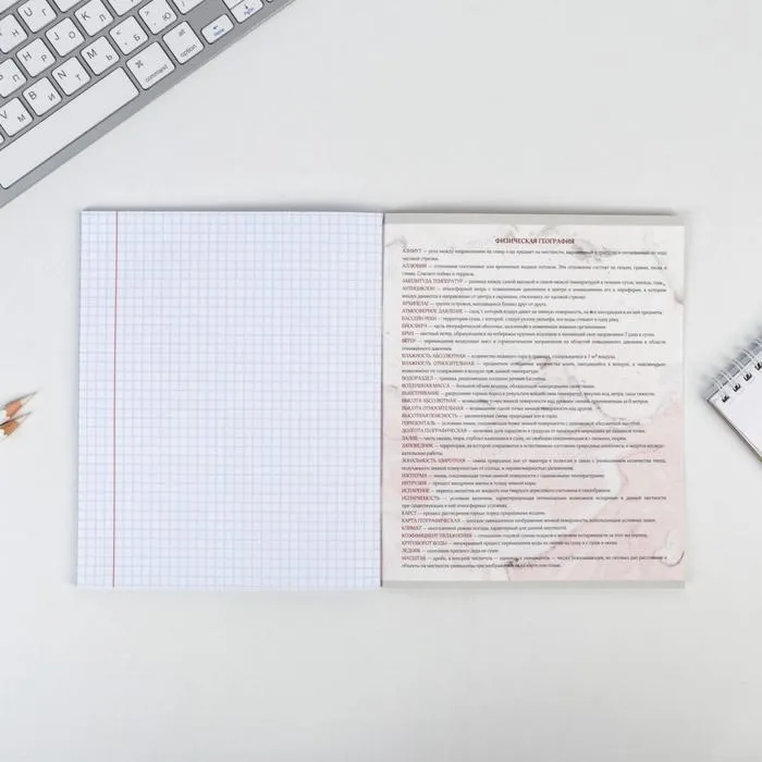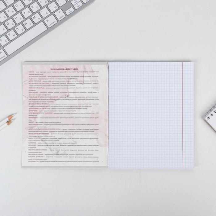 Тетрадь в клетку, предметная, 48 л.,на скрепке, А5 «МРАМОР. География» — Характеристики
