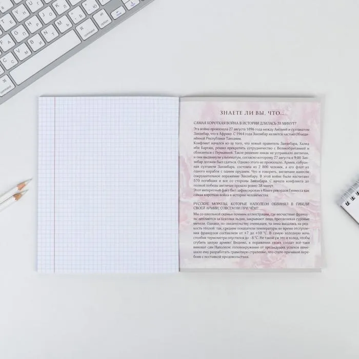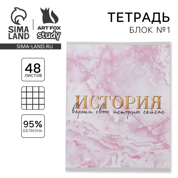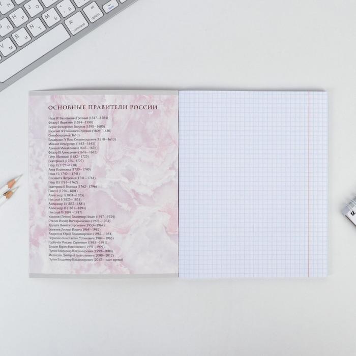 Тетрадь в клетку, предметная, 48 л.,на скрепке, А5 «МРАМОР. История» — Характеристики