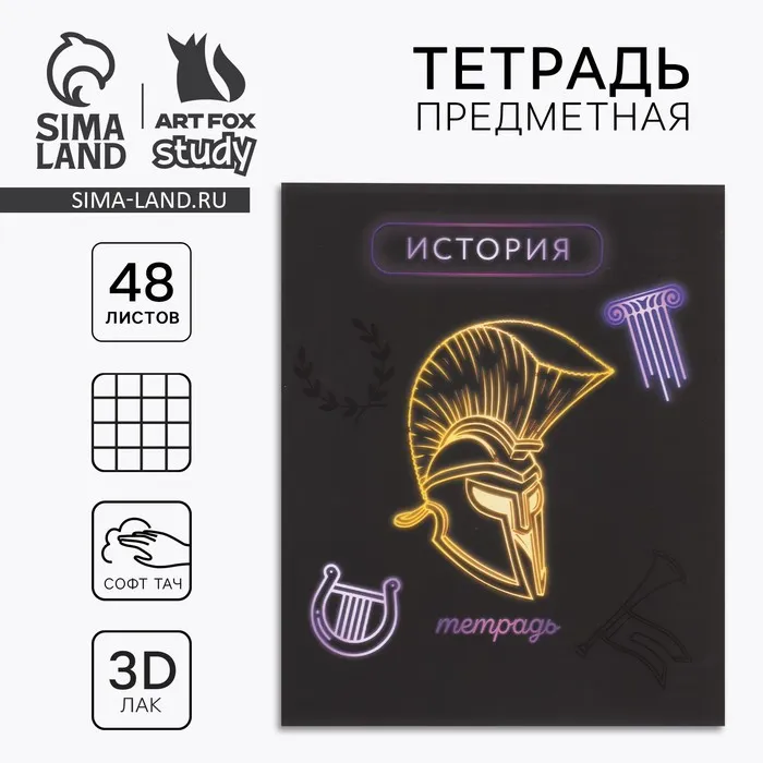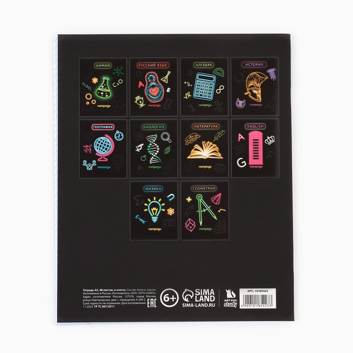 Тетрадь в клетку, предметная, 48 л.,на скрепке, А5 «Неон. История» — Характеристики