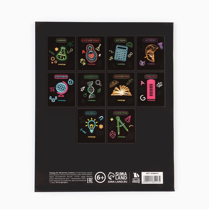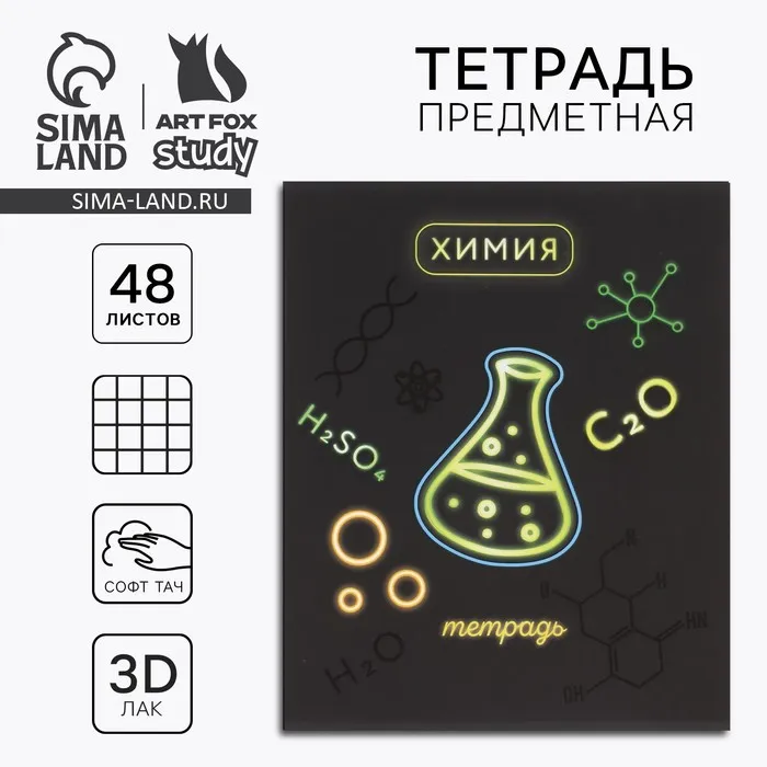Тетрадь в клетку, предметная, 48 л.,на скрепке, А5 «Неон. Химия» — Характеристики