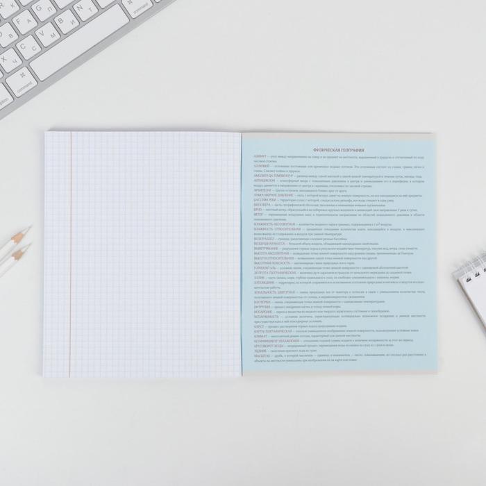Тетрадь в клетку, предметная, 48 л.,на скрепке, А5 «ПЕРСОНАЖИ. География» — Характеристики