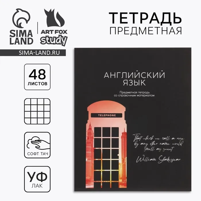Тетрадь в клетку, предметная, 48 л.,на скрепке, А5 «Силуэт. Английский язык» — Характеристики