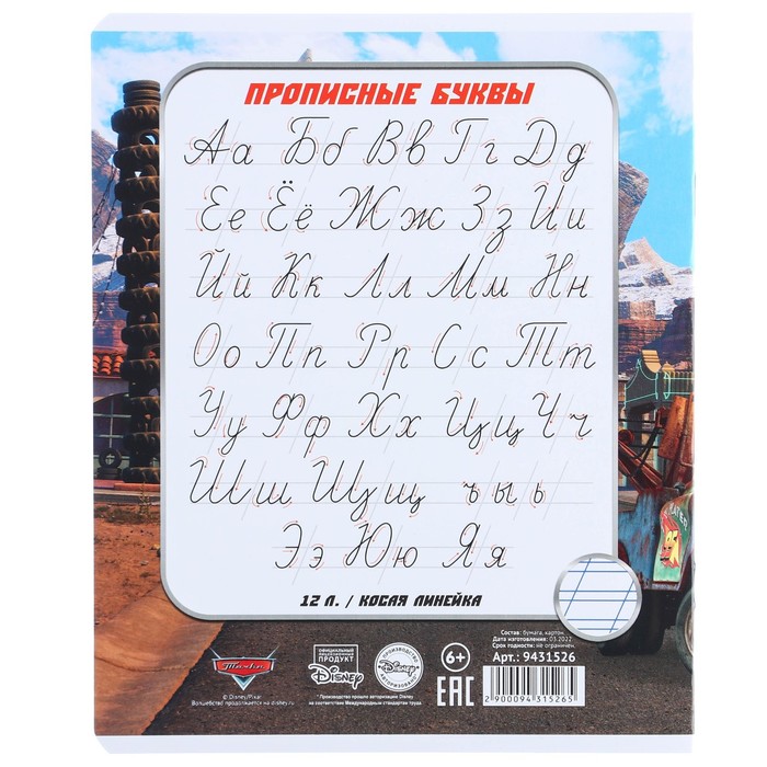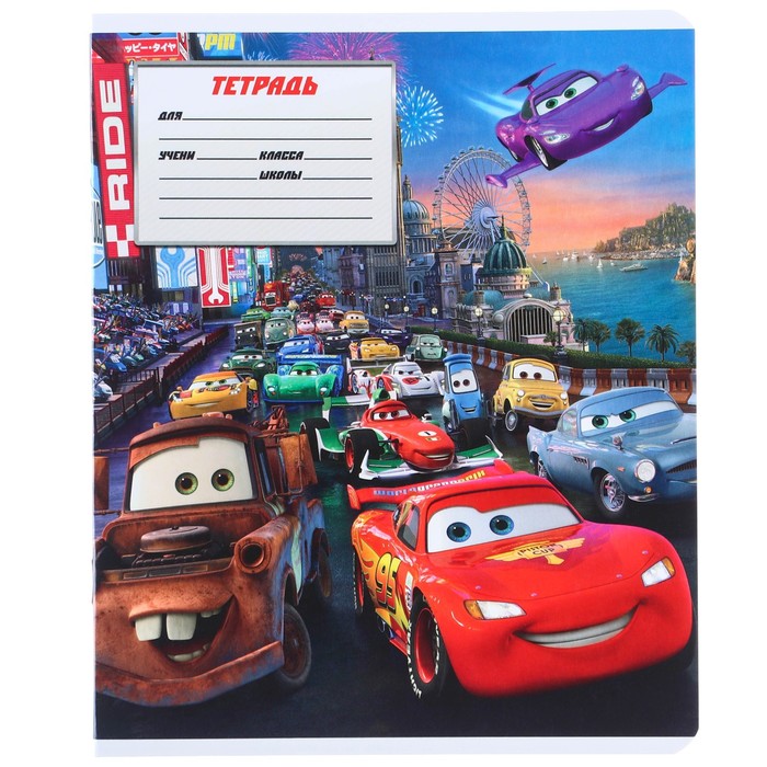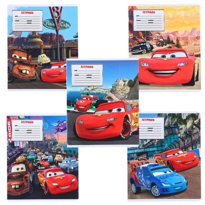 Тетрадь в косую линейку 12 листов, 5 видов МИКС, обложка мелованный картон, «Тачки» — Характеристики