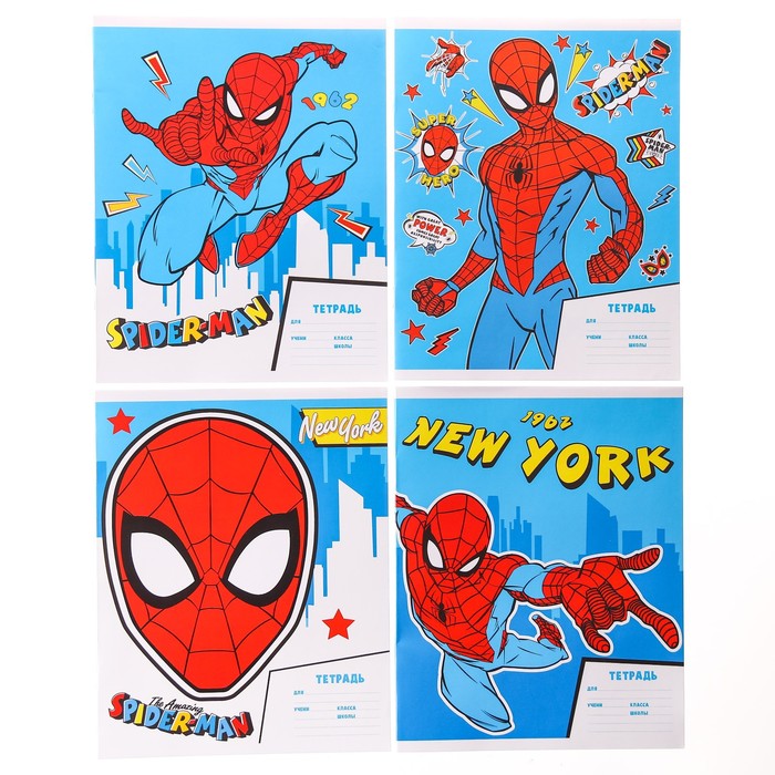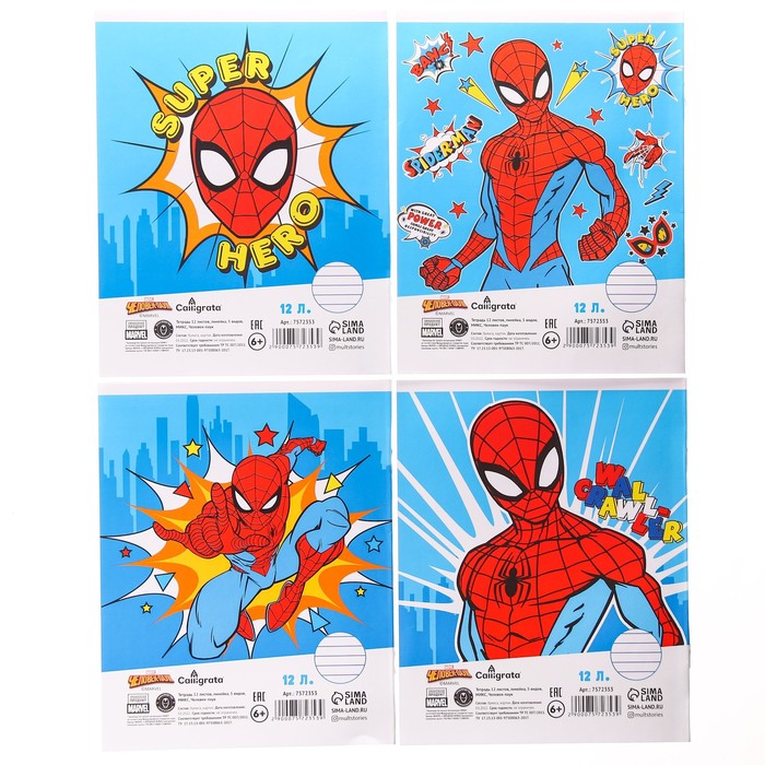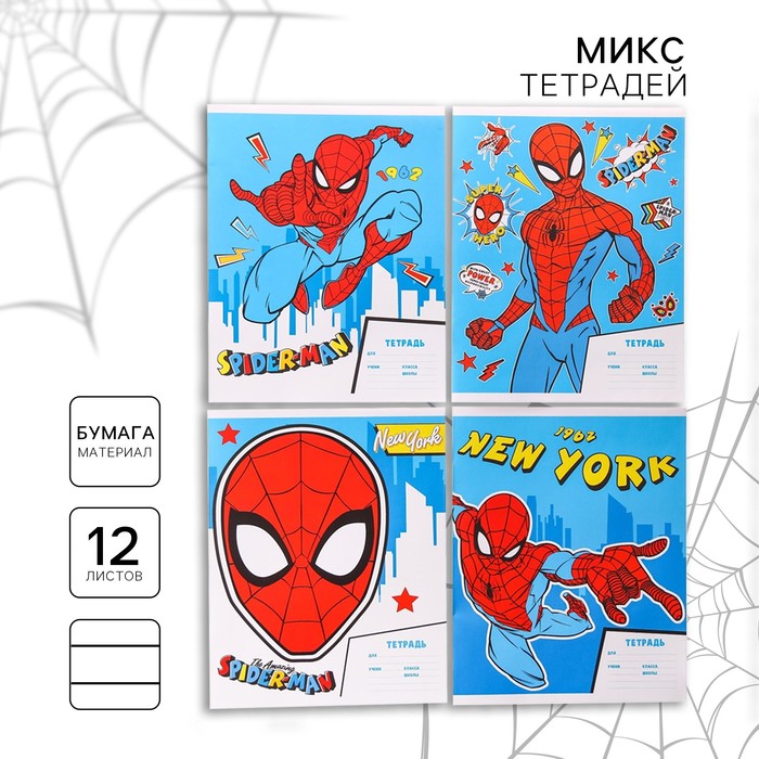 Тетрадь в линейку 12 листов, 4 вида МИКС, обложка мелованная бумага, Человек-паук — Характеристики