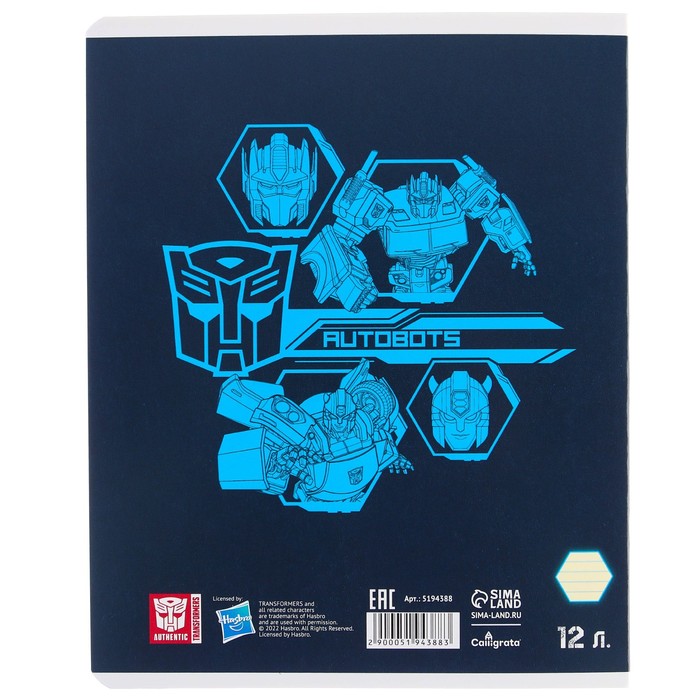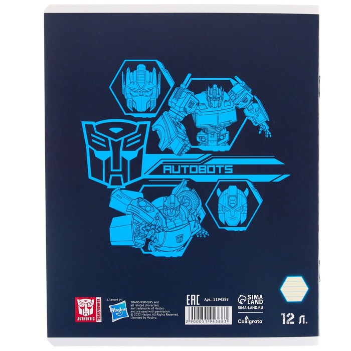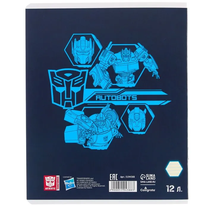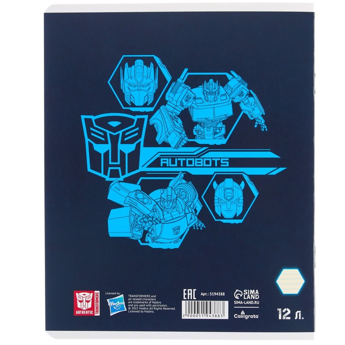 Тетрадь в линейку 12 листов, 5 видов МИКС, обложка мелованный картон, «Трансформеры» — Характеристики