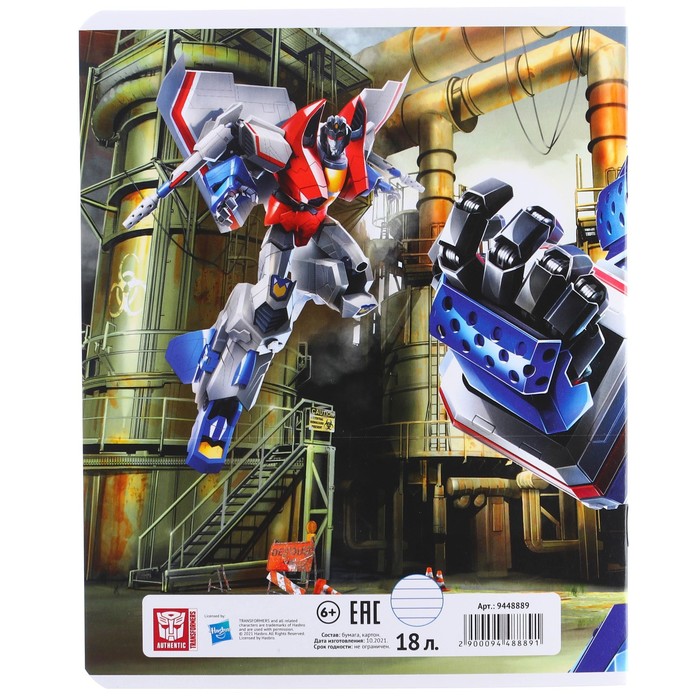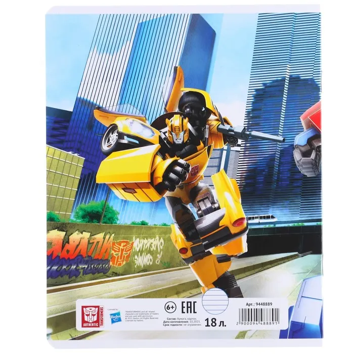 Тетрадь в линейку 18 листов, 5 видов МИКС, обложка мелованный картон, «Трансформеры» — Характеристики