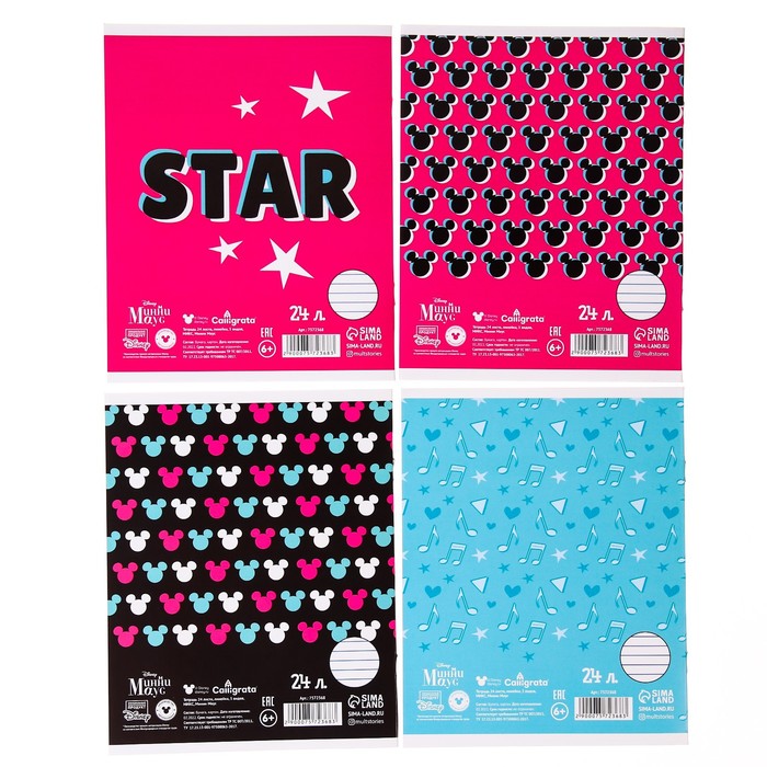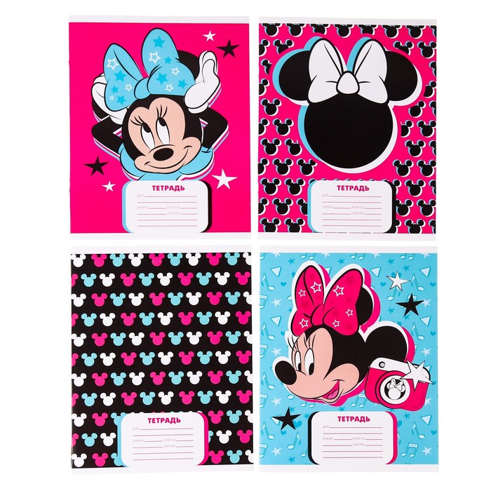 Тетрадь в линейку 24 листа, 4 вида МИКС, обложка мелованный картон, «Минни Маус» — Характеристики