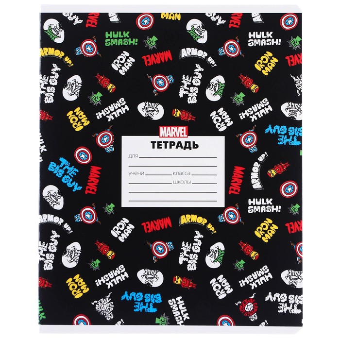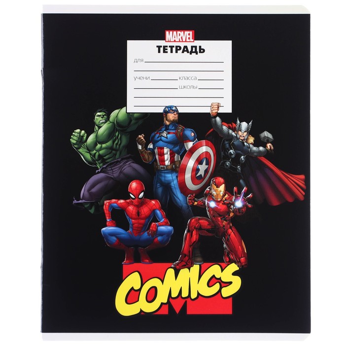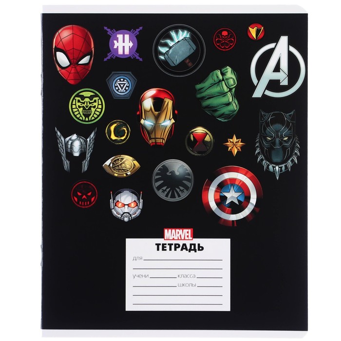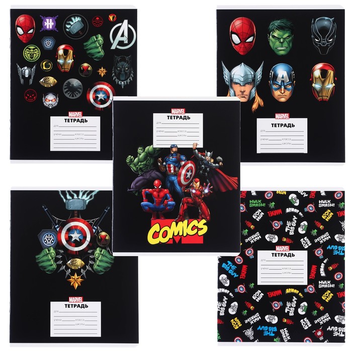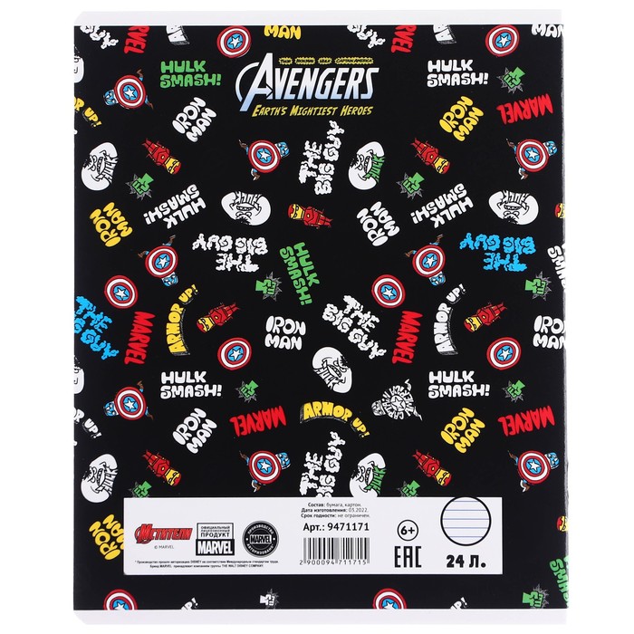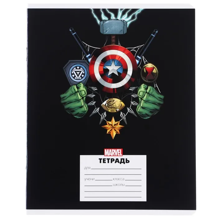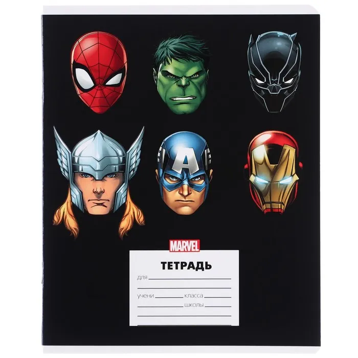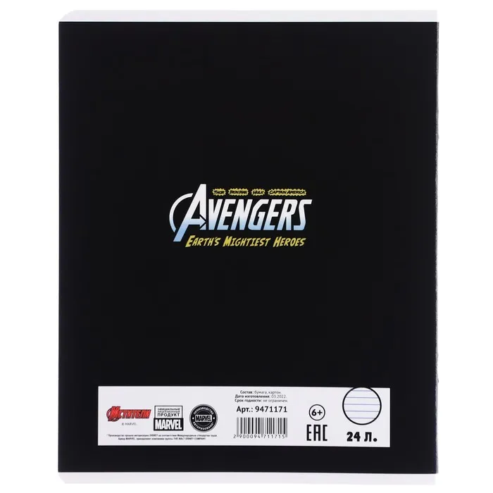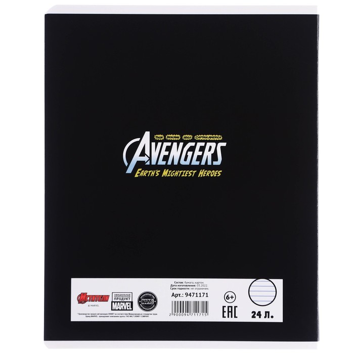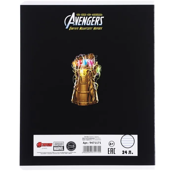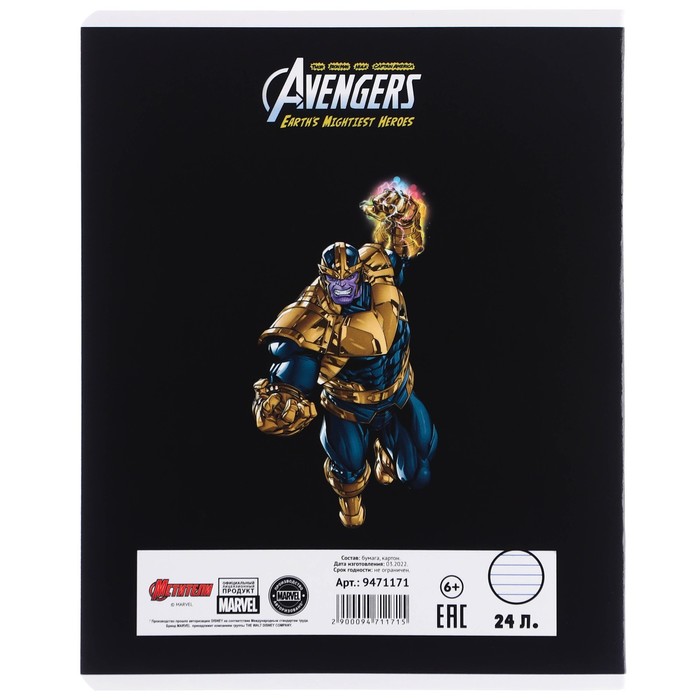 Тетрадь в линейку 24 листа, 5 видов МИКС, частичный уф-лак, обложка мелованный картон, «Мстители» — Характеристики