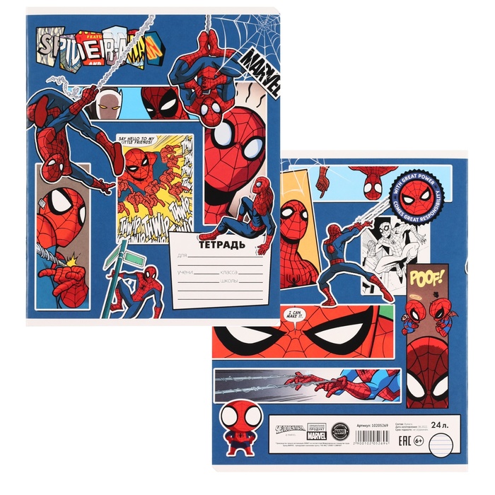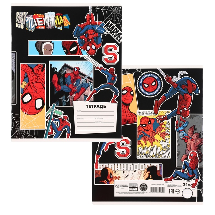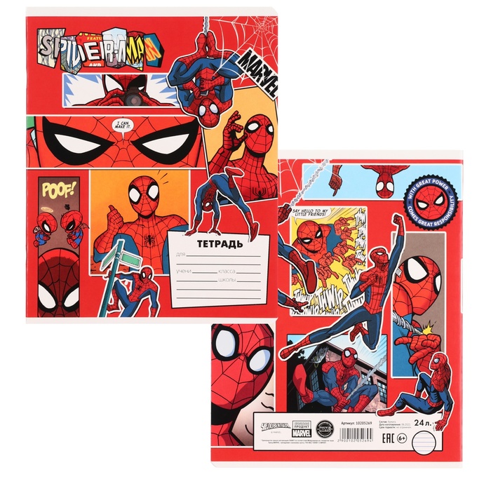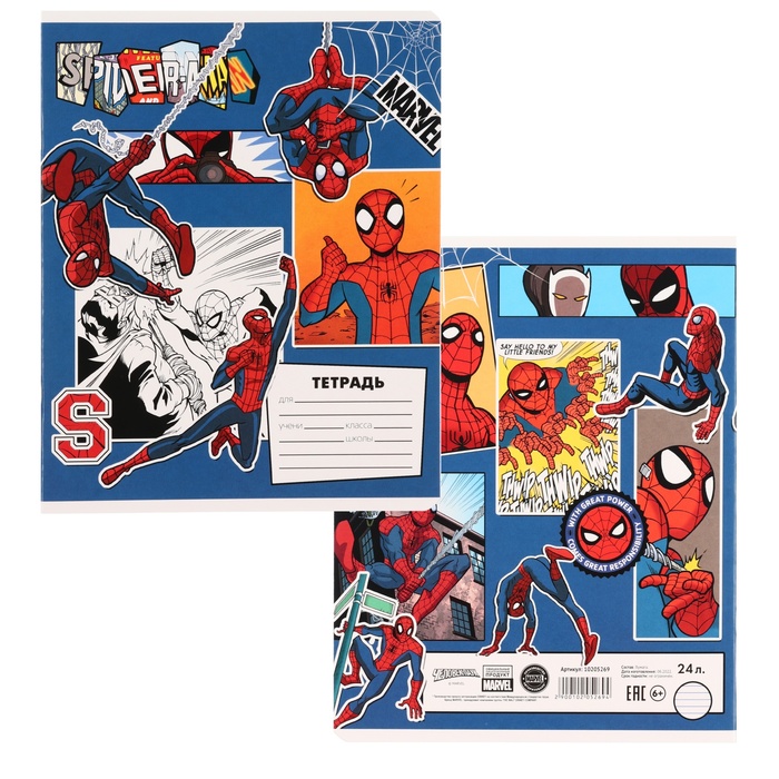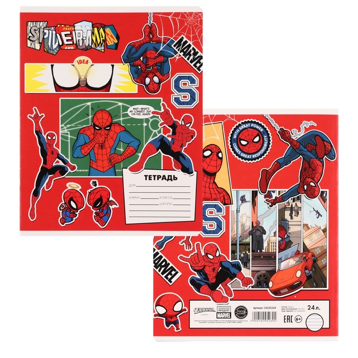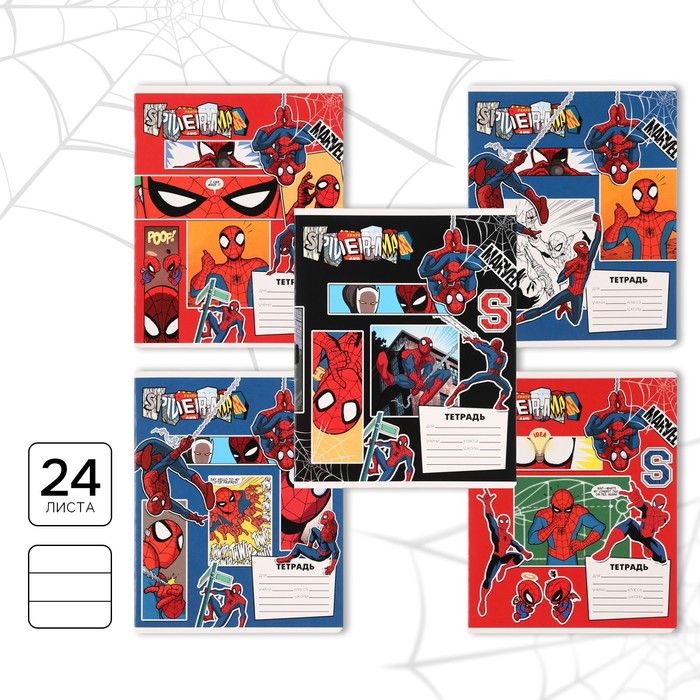 Тетрадь в линейку 24 листа, 5 видов МИКС, обложка мелованный картон, «Человек-паук» — Характеристики