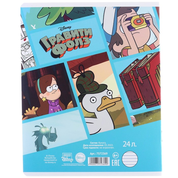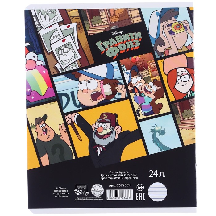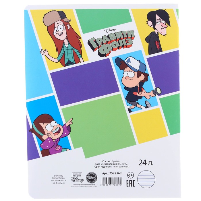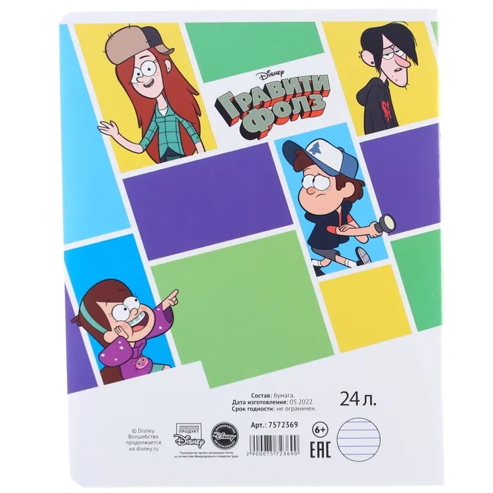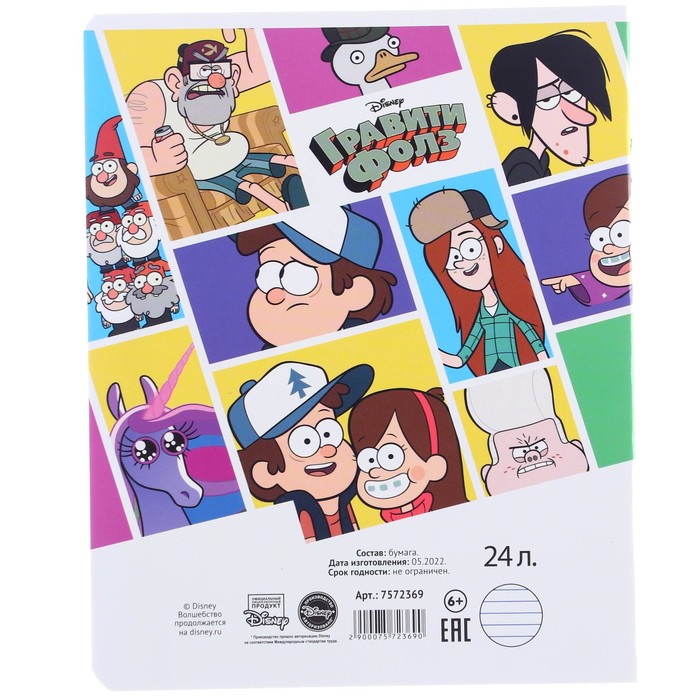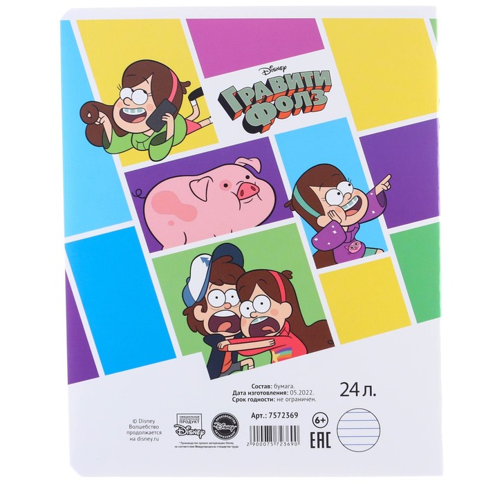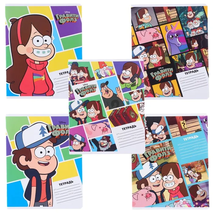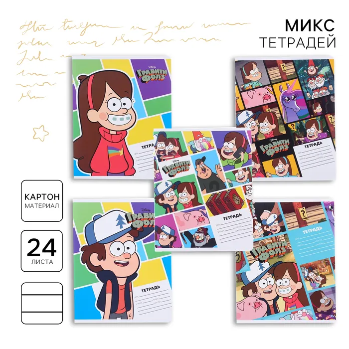 Тетрадь в линейку 24 листа, 5 видов МИКС, обложка мелованный картон, «Гравити Фолз» — Характеристики