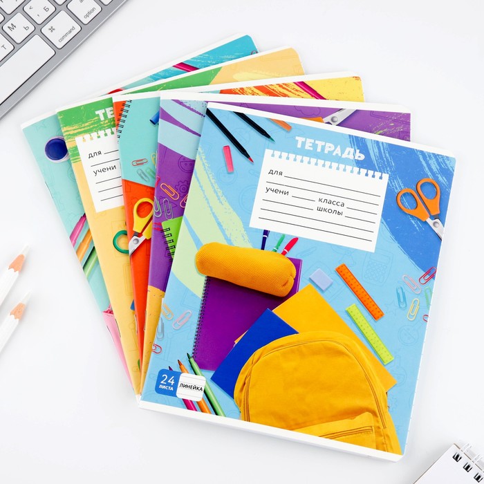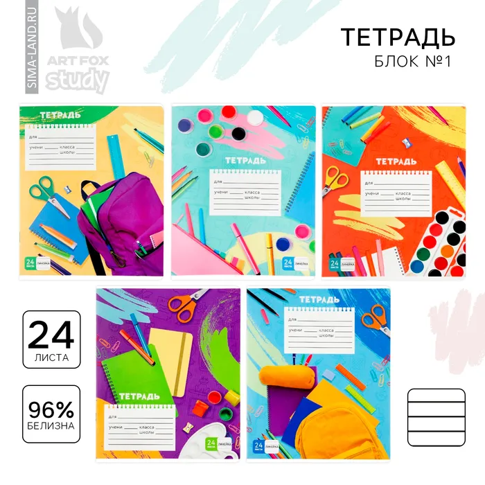 Тетрадь в линейку, 24 листа, А5, на скрепке, блок №1 «Школьные будни» МИКС — Характеристики
