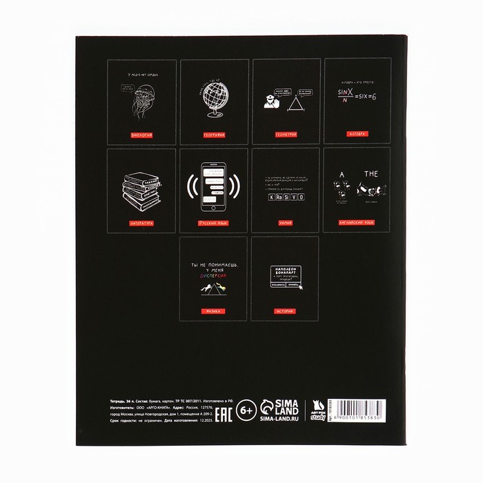 Тетрадь в линейку, предметная, 36 л.,на скрепке, блок №1«Черный фон. Литература» — Характеристики