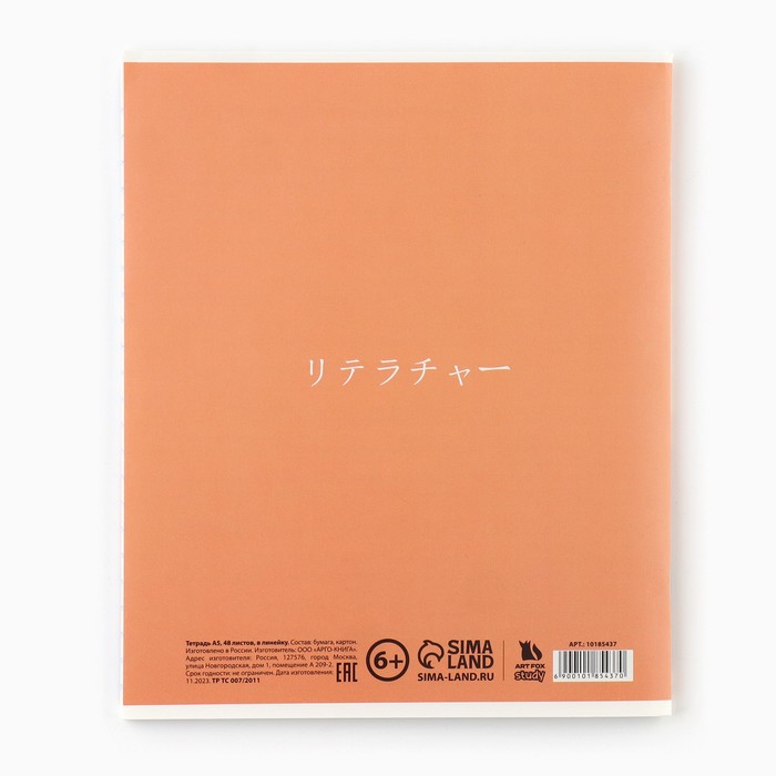 Тетрадь в линейку, предметная, 48 л.,на скрепке, А5 «Аниме. Литература» — Характеристики