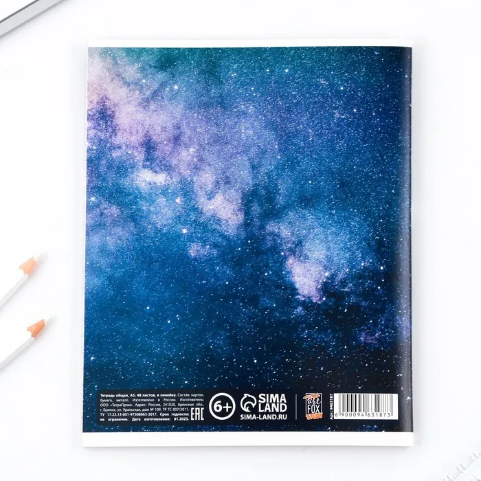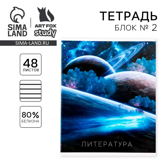 Тетрадь в линейку, предметная, 48 л.,на скрепке, А5 «КОСМОС. Литература» — Характеристики