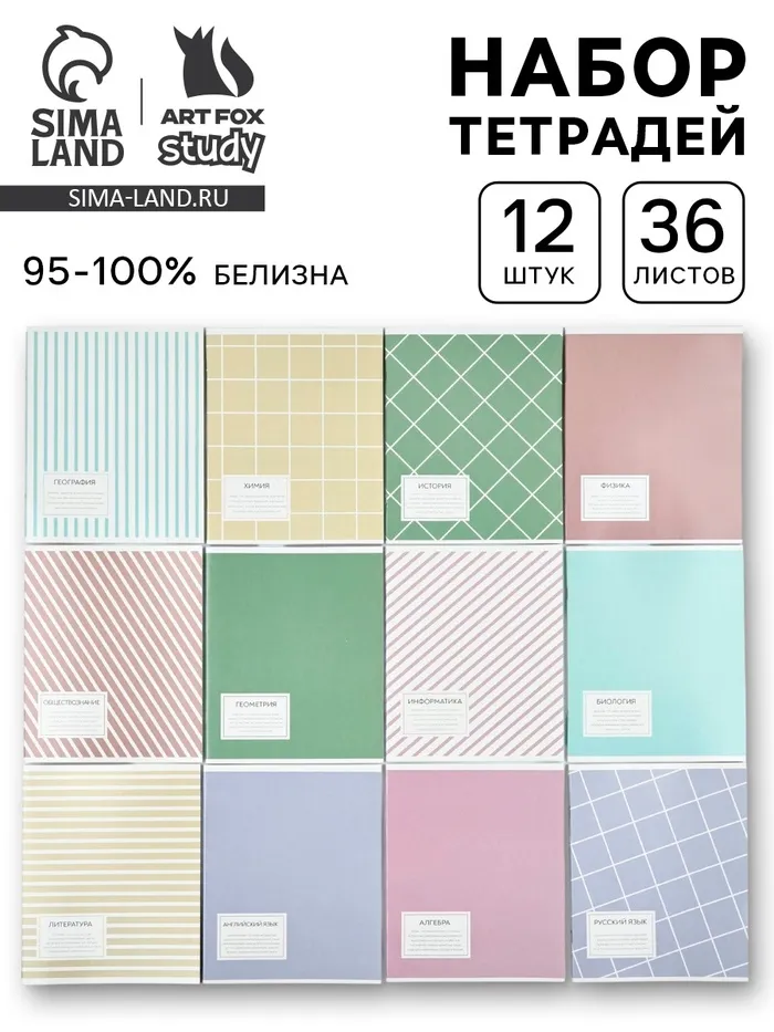 Тетради предметные, 36 л., набор из 12 шт., блок №1 «Пастель» — Характеристики