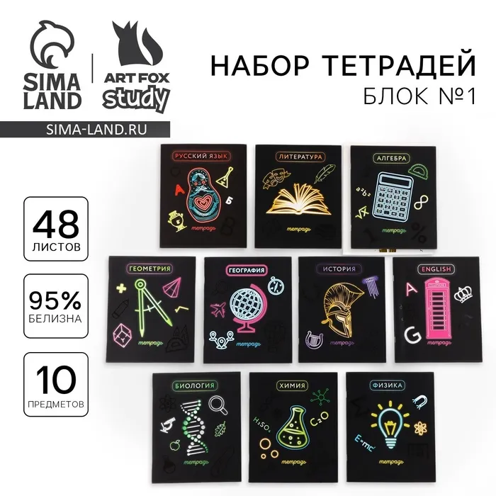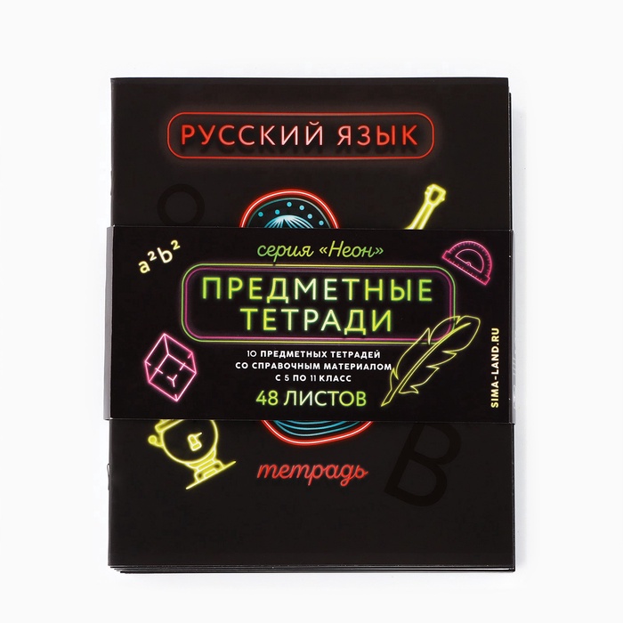 Тетради предметные, 48 л., набор из 10 шт., блок №1, софт тач лам, 3D лак «Неон» — Характеристики