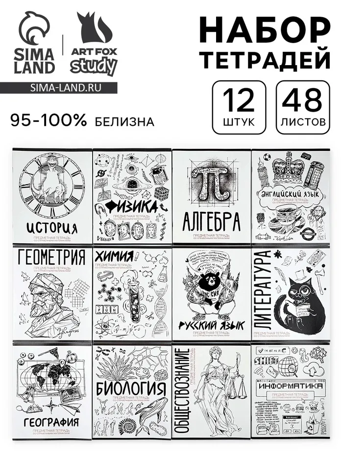 Тетради предметные, 48 л., набор из 12 шт., блок №1 «Скетчи» — Характеристики