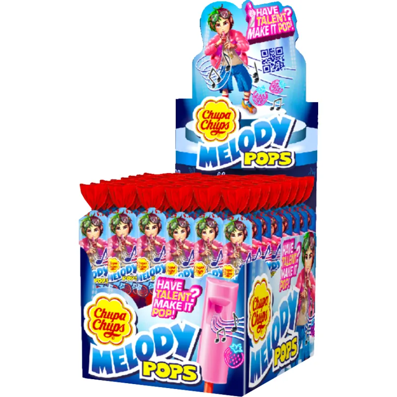 Chupa Chups Melody Pops – это леденец со вкусом клубники, который также можно использовать как свисток. Вес упаковки 15 г. Мы постоянно обновляем информацию о товаре, но рекомендуем всегда проверять её на упаковке.