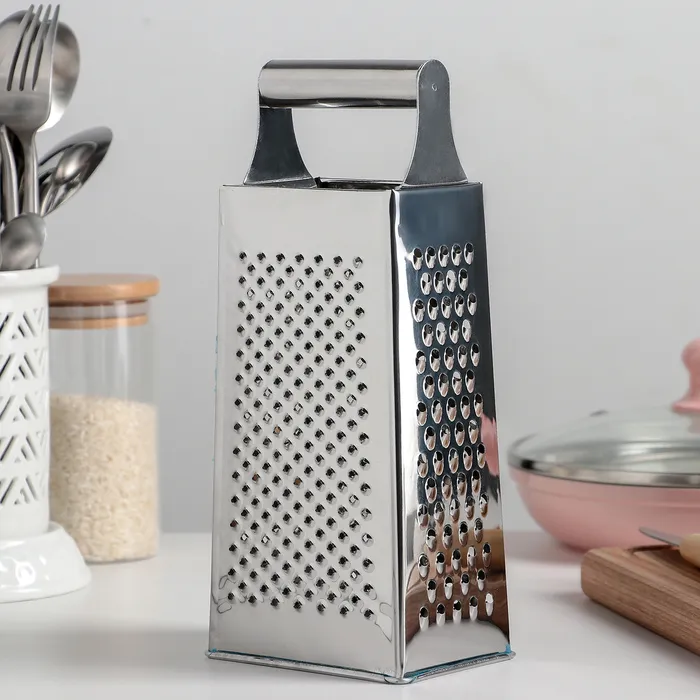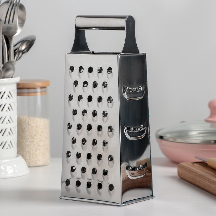 Тёрка четырёхгранная Доляна «Металлик», 10×7,5×23,5 см, цвет хромированный — Характеристики