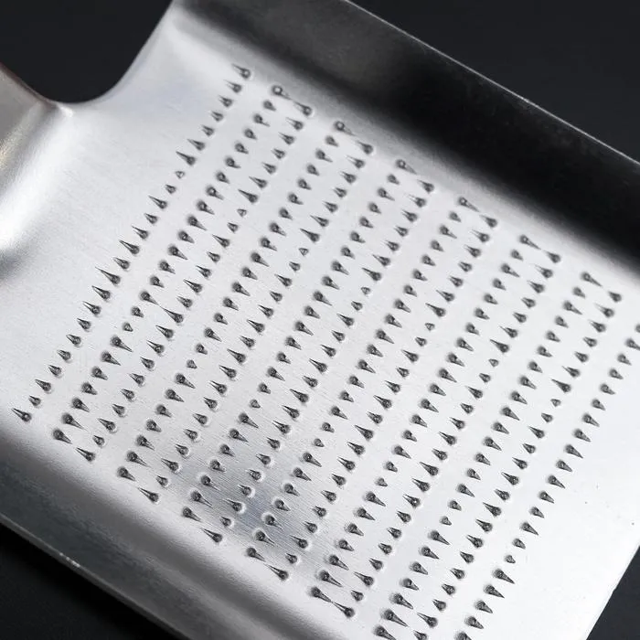 Стальная терка для сыра, цедры, шоколада, орехов, с удобной ручкой и очень острыми лезвиями из пищевой нержавеющей стали, долговечная, устойчивая к высоким температурам, воздействию кислот и жира.