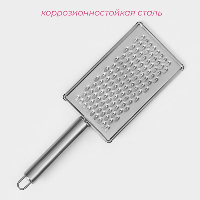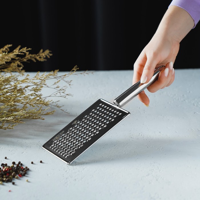 Тёрка для сыра Доляна «Металлик», 14×8 см, мелкая, с ручкой, серебристая — Характеристики