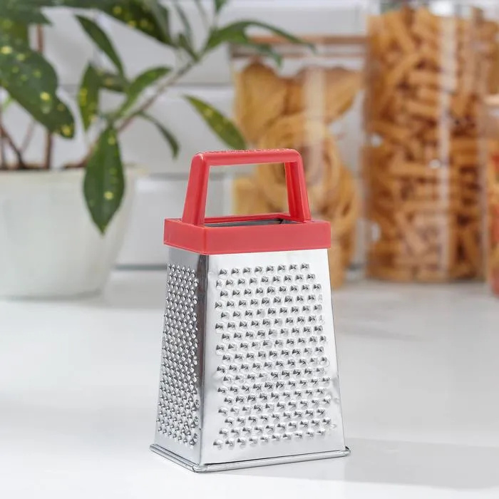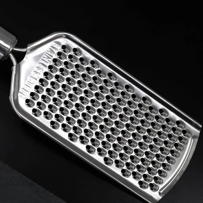 Стальная терка для овощей сыра, цедры, шоколада, орехов с удобной ручкой и очень острыми лезвиями из пищевой нержавеющей стали, долговечная, устойчивая к высоким температурам, воздействию кислот и жира.
