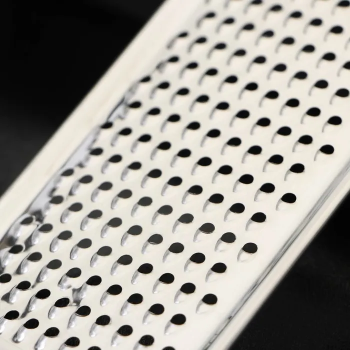Стальная терка для овощей сыра, цедры, шоколада, орехов с удобной ручкой и очень острыми лезвиями из пищевой нержавеющей стали, долговечная, устойчивая к высоким температурам, воздействию кислот и жира.