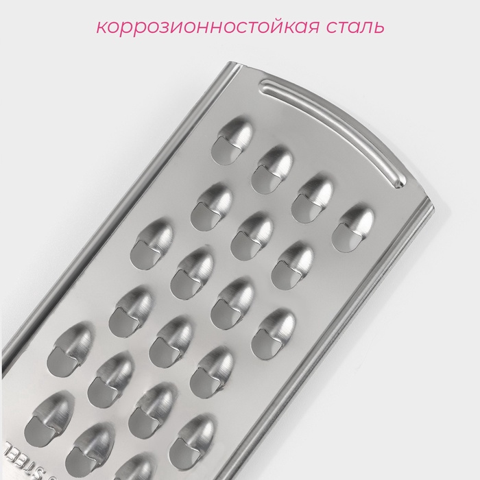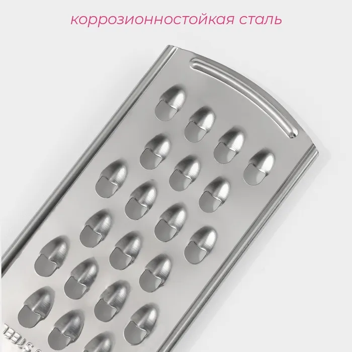 Тёрка для сыра с ручкой Доляна «Металлик», 23×6 см, крупная, серебристая — Характеристики