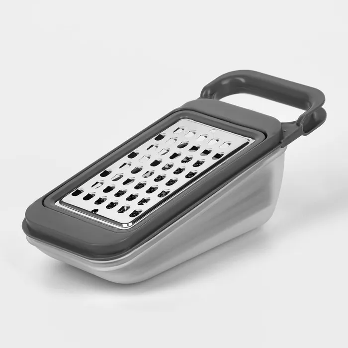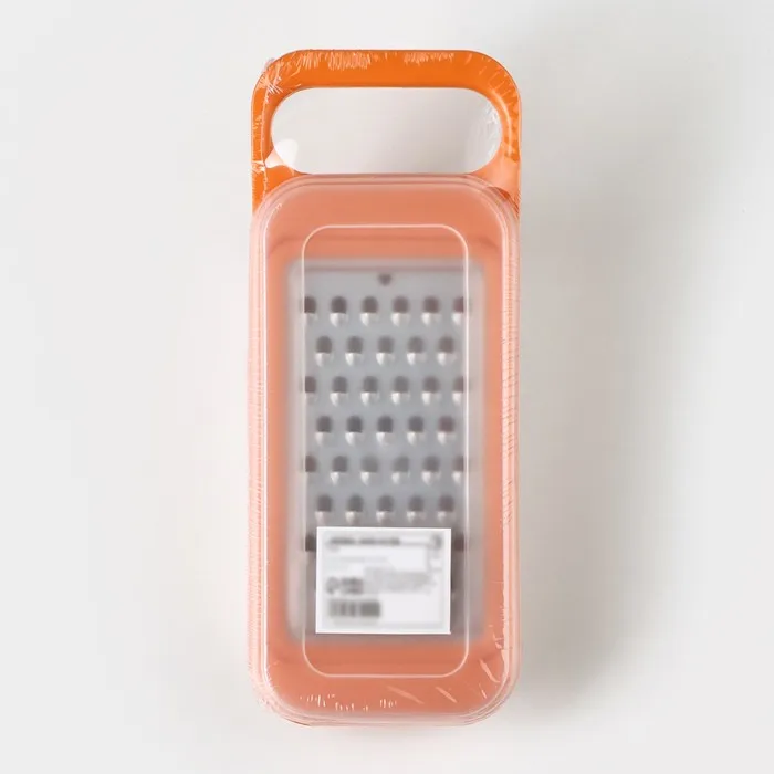 Для того чтобы вам было удобнее, а ваша кухня оставалась чистой в процессе приготовления пищи, терка идет с лотком для нарезанных продуктов. Терка устанавливается на лоток, не скользя и не падая, а ваши нарезанные продукты не разлетаются по всему столу, а собираются в лотке из поликарбоната.