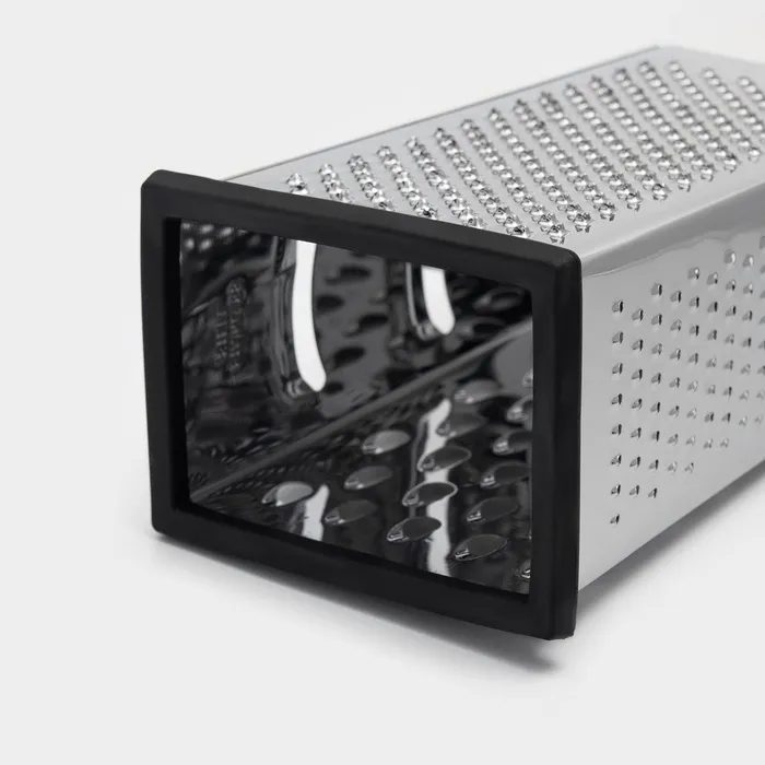 - Универсальность: тёрка “Gate” имеет четыре рабочие грани с различными размерами ячеек, что позволяет терть разные продукты в зависимости от желаемой консистенции.