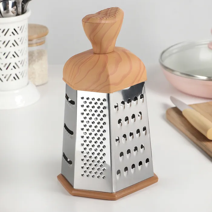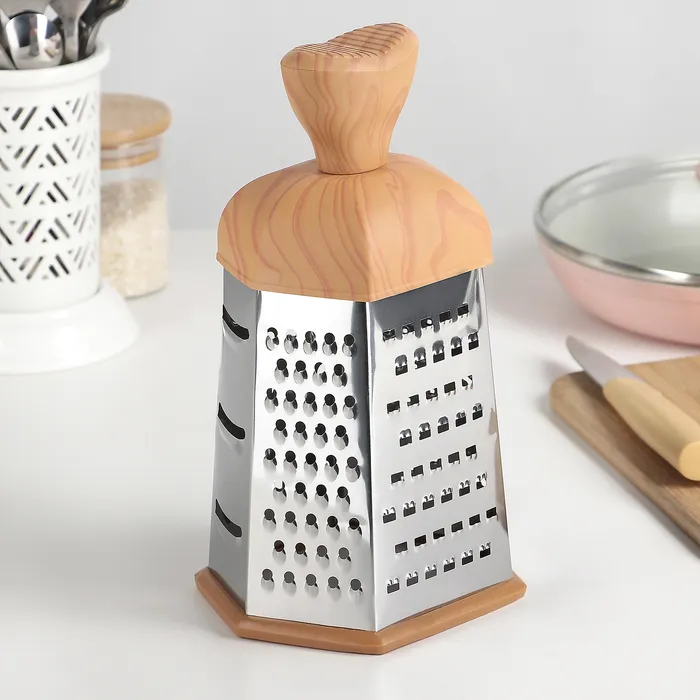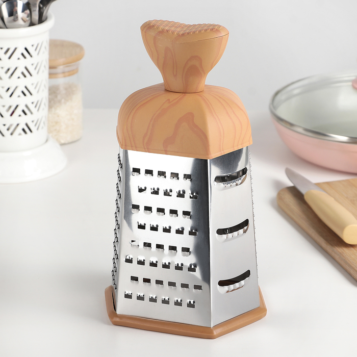 Тёрка шестигранная Доляна «Деревенька», 12×11×22 см, цвет коричневый — Характеристики