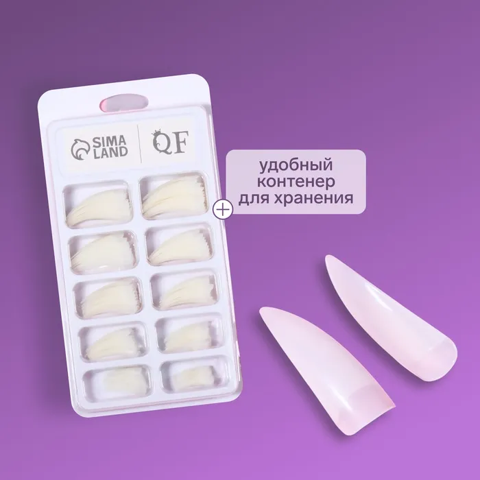Типсы для наращивания ногтей, 100 шт., форма стиллет, короткая контактная зона, в контейнере, молочные — Характеристики