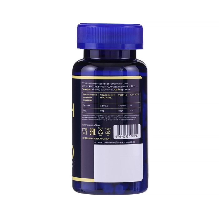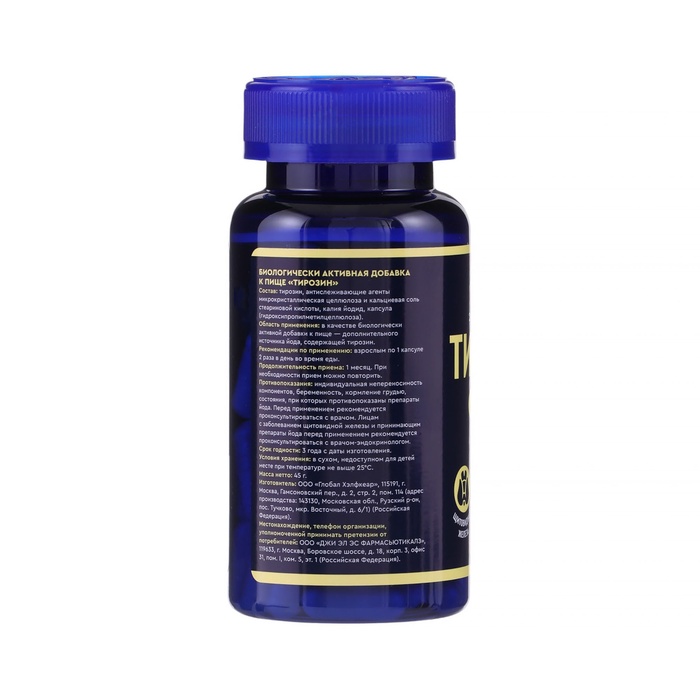 «Тирозин» - биологически активная добавка к пище - гидроксипропилметилцеллюлозные капсулы.