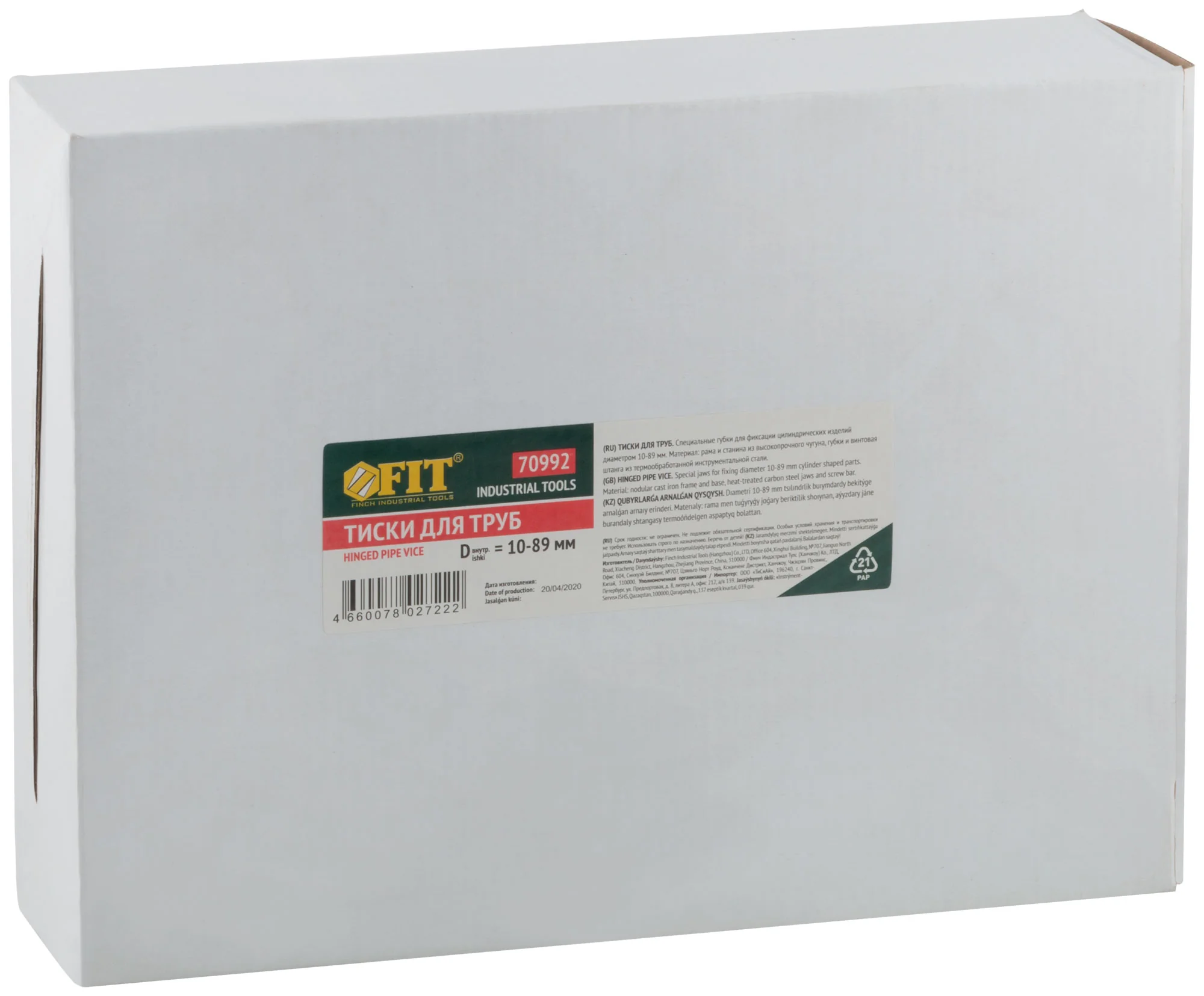 Тиски FIT 70992 отличаются простотой в использовании и надежностью. Они позволяют быстро и безопасно зафиксировать трубу в диапазоне от 10 до 89 мм, что делает процесс монтажа более удобным и эффективным.