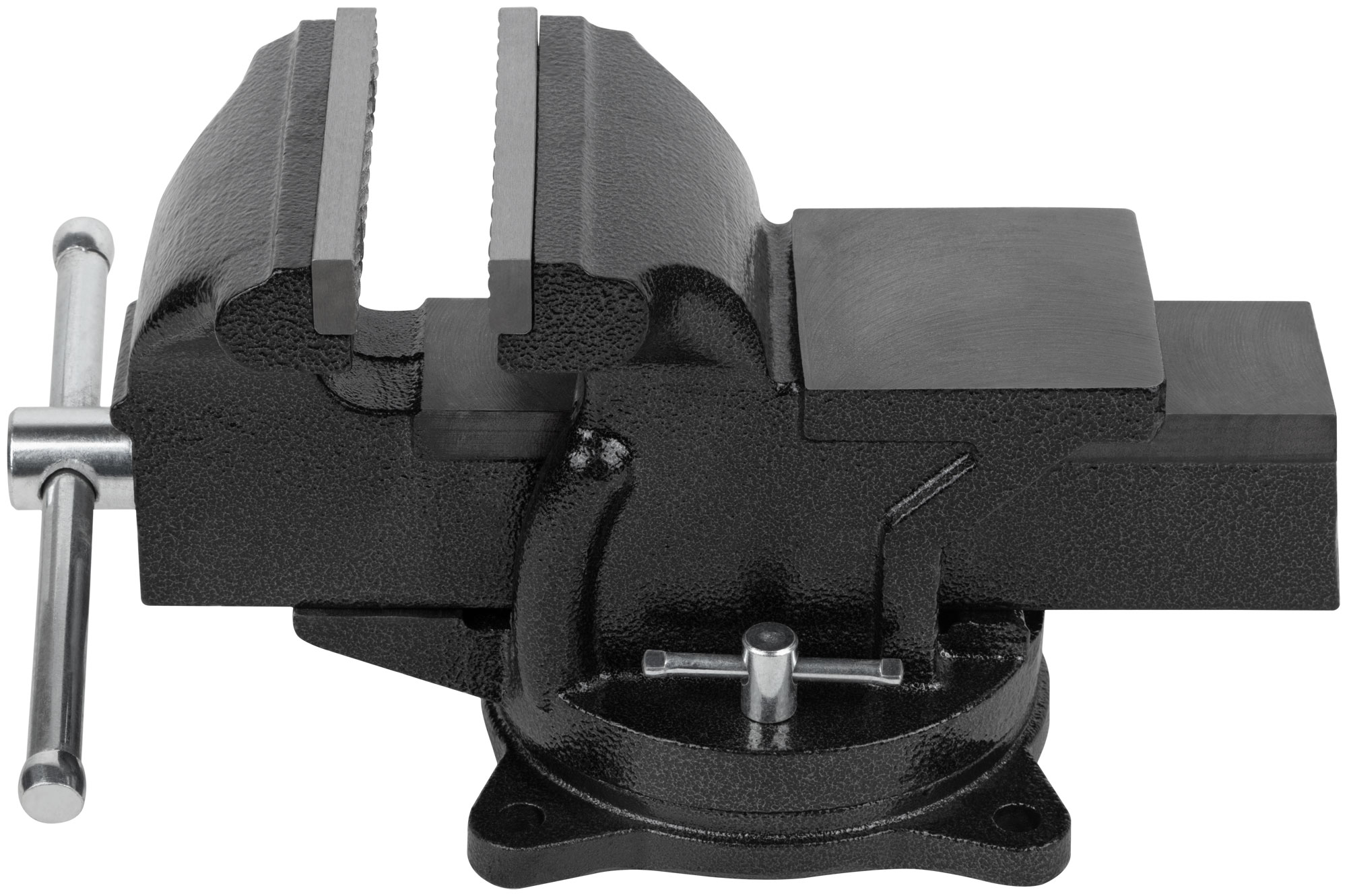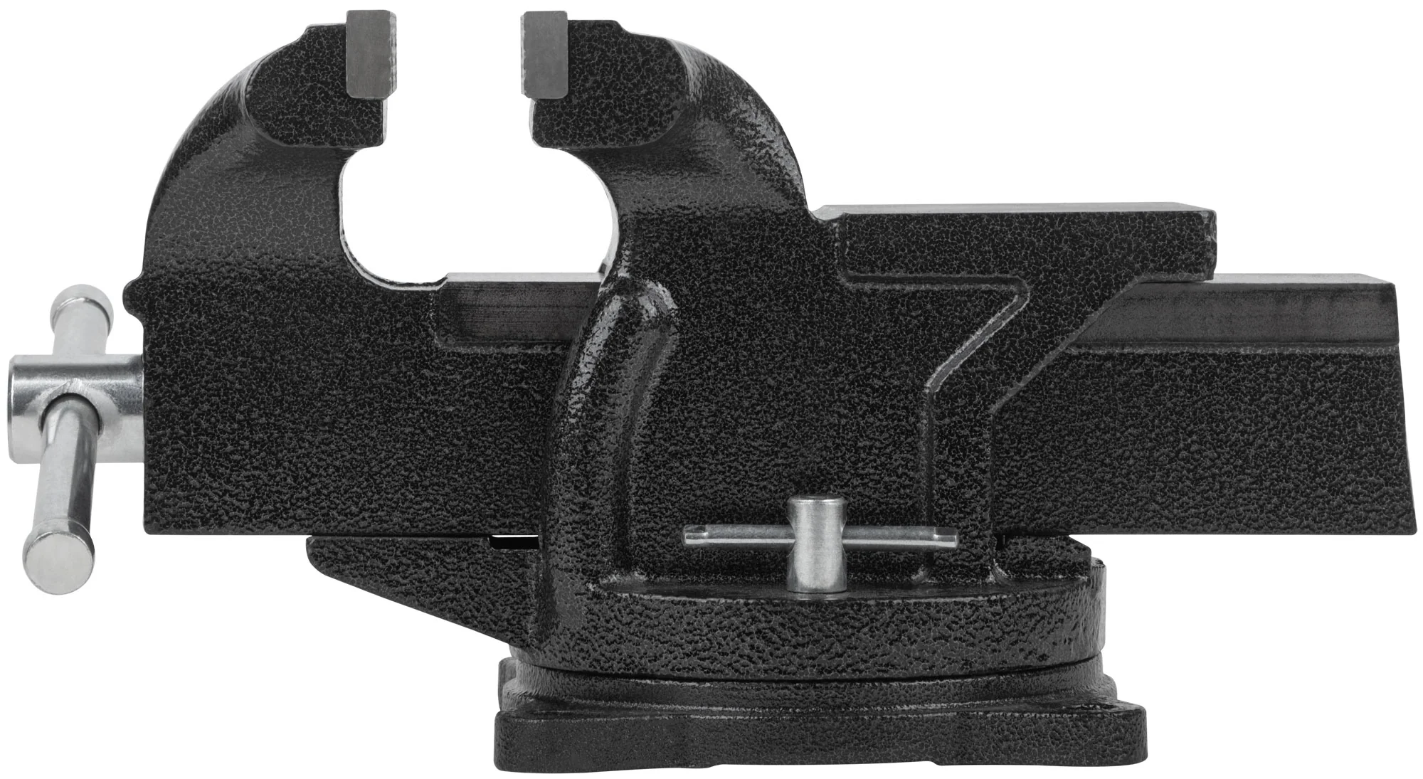 Конструкция тисков включает усиленный корпус из чугуна, что гарантирует долговечность и устойчивость к нагрузкам. Дополнительная наковальня расширяет функционал инструмента, делая его незаменимым помощником в слесарных и монтажных работах.