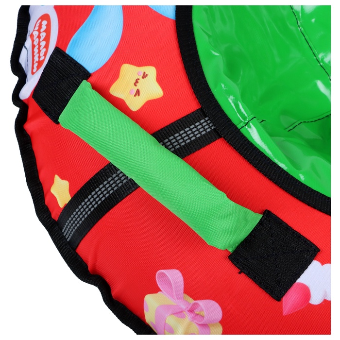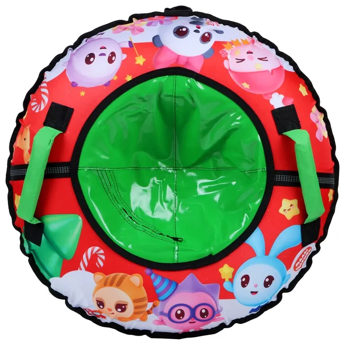 Тюбинг – отличный спортивный инвентарь для активного зимнего отдыха. Дно изделия изготовлено из автотента, что обеспечивает отличное скольжение во время катания. Тюбинг оснащён усиленными ручками для дополнительной безопасности ребёнка. Буксировочный трос позволяет легко транспортировать изделие. Фактический размер накачанного инвентаря зависит от температуры внешней среды и давления в камере. Предназначен для детей от 3 лет.